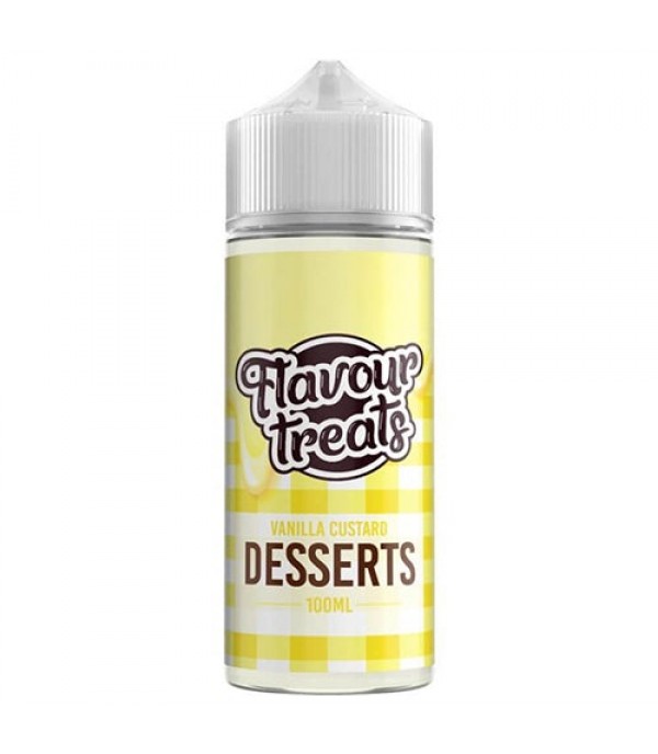 Sticky Toffee Pudding and custard 100ml Shortfill e-liquid by Flavour Treats, rich dark sponge cake, drizzled with sticky toffee sauce and a generous helping of thick vanilla custard.You can add two 18mg nicotine shots to this liquid to make 3mg nico..